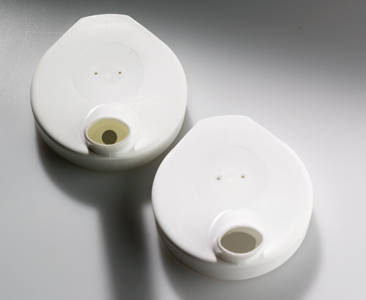 Toppen fås med et lille hul til tyndtflydende væsker eller et lidt større hul til tyktflydende væsker. Man kan trykke med pegefingeren på de 2 huller, som sider i låget og med små tryk kan man dosere væskemængden - hvis man ikke selv kan suge. |